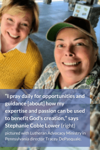 Stephanie Coble Lower attended the Susquehanna Summit in Oct. 2022, an interfaith environmental gathering, after her Ambassador training. “One thing I have discerned is that I love connecting organizations in our work. There is so much more we can do together as opposed to individually,” she said. Great times to invite an Ambassador to facilitate presentations and conversations on faith and climate include conferences, small-group forums and retreats, and important days like Earth Day and holy seasons. “I pray daily for opportunities and guidance [about] how my expertise and passion can be used to benefit God’s creation,” Lower adds.
