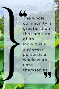 At the core of my ongoing personal passion, and my philosophy regarding the theory of change, is the juxtaposition of two realities: the whole community is greater than the sum total of its individuals, and every person is a whole world unto themselves. This interplay is explored and celebrated in numerous elements of Jewish tradition, as well as other faith traditions. In this reflection, I seek to lay out the importance of both realities in tandem as a path for collective liberation and dignity for all of God’s creation.