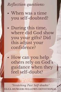 I have always known myself to be a “self-doubter.” I am constantly doubting myself – my ability to lead, my ability to be a good friend, but especially my ability to lead God’s people. I have been a self-doubter when it has come to God’s plan for me.