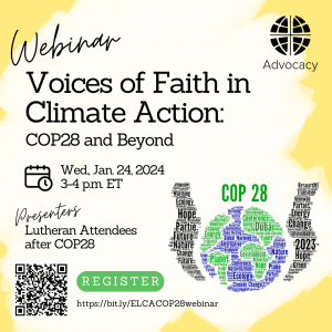 The ELCA presence at COP28 advances our duty through global dialogues that seek to address pressing environmental challenges.