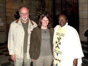 The next time I was in Cape Town my family was visiting from the US. My father and I went to St. George’s for the Friday morning Eucharist, which Tutu was again leading. After the service I introduced him to my father and they were thrilled to meet each other. He told us we should get a photo together. I remember my father and I standing on either side him. He looked at me with a scowl and said, “What are you doing? You must be in the middle my dear, you are the rose between these two old thorns.” We all laughed as the photo was snapped. Afterwards, Tutu invited us to breakfast. He arrived at the café below St. George’s wearing a shirt that read “This is What Old Looks Like” – a perfect reflection of his humorous, joy-filled disposition. Many jokes were shared that morning and I learned my fourth lesson from the Arch – Laugh often, live a joy-filled life, and don’t take yourself too seriously.