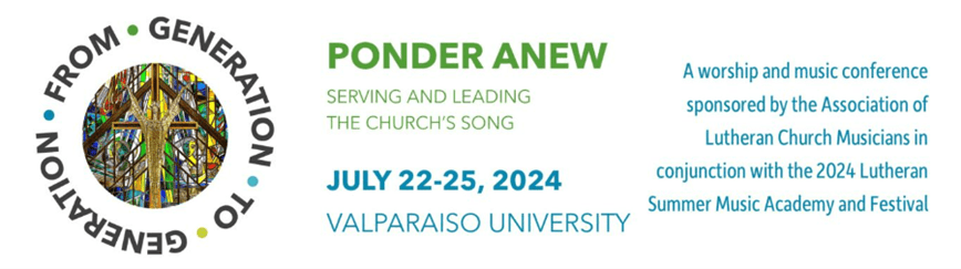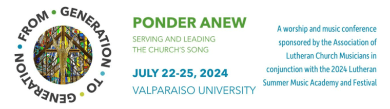 Join us on the campus of Valparaiso University and the beautiful Chapel of the Resurrection as we Ponder Anew how to communicate God’s saving grace to all peoples in meaningful, relevant ways. Through workshops, discussions, worship, and hands-on learning opportunities, we invite you to strengthen your gifts and develop new skills in topics such as worship leadership, technology, composition, enriching assembly song and more, all the while forming connections from Generation to Generation with young musicians attending the Lutheran Summer Music Academy (LSM).