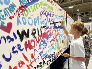 At the Naming Project booth, participants relaxed in the colorful Garden of Eden, receiving sparkle blessings from local Drag Queens. Deacon Ross Murray’s message was clear: everyone is known and loved by God and the church just as they are. At the Civic Life and Faith booth, students were inspired to think about social issues and how their voices can shape the future. A student from San Gabriel Lutheran Church, Alvarado, TX, shared that the experience opened their eyes to the many issues still needing attention and dialogue. Another student learned the importance of crafting statements that genuinely make a difference.