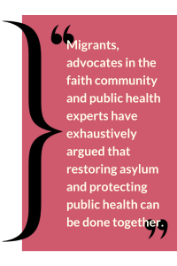 Migrants, advocates in the faith community and public health experts have exhaustively argued that restoring asylum and protecting public health can be done together. The U.S. has the ability and resources to welcome humanely, efficiently and safely. Welcoming people in need of refuge is woven into the U.S.’ national identity. Lutheran experience in the United States reflects the continuity of this movement, as at one point after World War II one out of every six Lutherans was a refugee.
